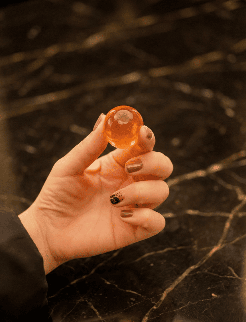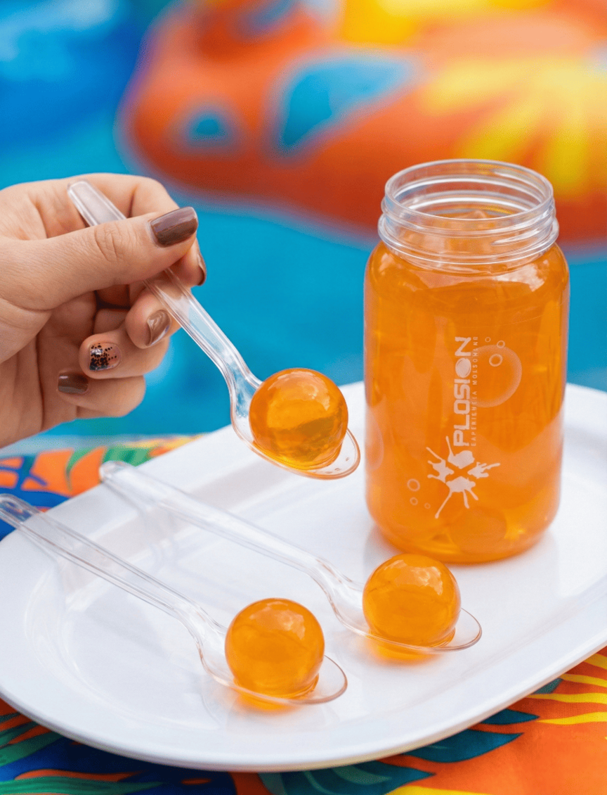 12 Cócteles moleculares de sabor naranja y tequila, una propuesta innovadora para disfrutar de un cóctel en forma de explosión de sabor. La combinación del dulce y cítrico de la naranja con el toque característico del tequila crea una experiencia única que estalla en tu boca. Perfectas para sorprender en cualquier evento o reunión, estas esferas elevan tus momentos especiales con un toque de frescura y originalidad. ¡Una forma divertida y sofisticada de disfrutar el clásico sabor de un Sunrise!